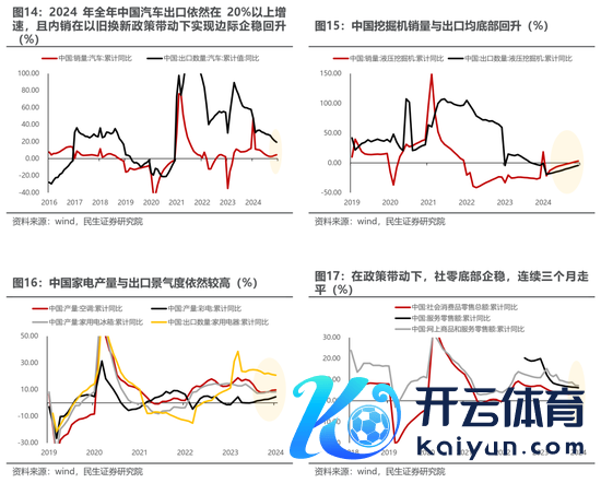 DeepSeek的出现标明好意思国对中国的AI压制并非安如盘石,这并不是说公司层面的差距不错随即拉平,而是“东谈主工智能”时候的可得性大大加多,AI的稀缺性大幅下降,因此取得的高估值也有可能拘谨。虽然,咱们不舍弃AI平权叙事下的部分AI+诓骗的中国互联网与云蓄意公司的契机。然而,阛阓更有可能转而去温雅其他边界的变化。咱们不错开动温雅中国基本面开动呈现出底部有韧性的特征,如汽车、家电、工程机械的产销量与出口发扬永远具备韧性,以旧换新计策驱动下社零2024年10月至12月流畅三个月走平,春节假期的出行、不雅影数据创下同期新高级。