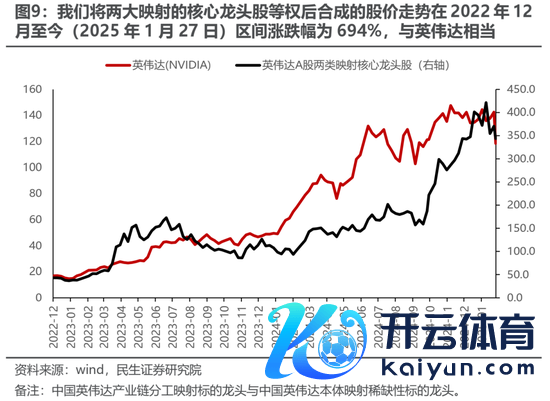 一方面,A股阛阓畴昔奴婢国际叙事的逻辑也将迎来变化,典型如国际实践的产业链单干映射,而自主可控链中部分国际实践的国内映射本质上亦然产业波澜下的“追逐”逻辑所驱动,事实上咱们将两大映射的中枢龙头股等权后合成的股价走势在2022年12月于今(2025年1月27日)区间涨跌幅为694%,与英伟达(600%,不辩论1月27日的着落则为743%)稀罕。中国AI关连板块并未因此前的逾期而低估,当然也谈不上因此而重估。反而当板块稀缺性叙事相似被冲破,再加上本人可能也存在一定的预期过高风险,关连板块与个股的估值溢价也可能需要资格回首。