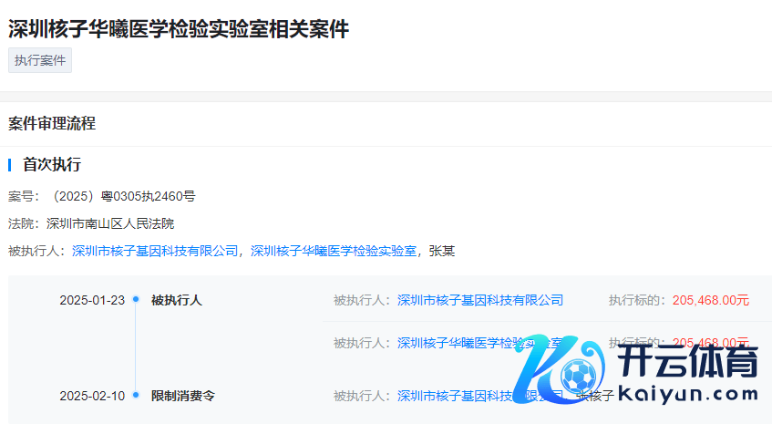 案件历程信息领略,本年1月,核子基因、深圳核子华曦医学测验实验室已因此案被强持20.5万余元。2月10日,深圳市南山区东说念主民法院向核子基因和张核子发出了收敛销耗令。