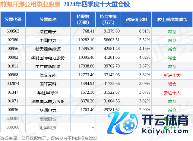 前海开源公用做事股票为股票型基金,证明最新一期基金季报显现,该基金金钱设置:股票占净值比90.6%,债券占净值比0.98%,现款占净值比7.27%。基金十大重仓股如下: